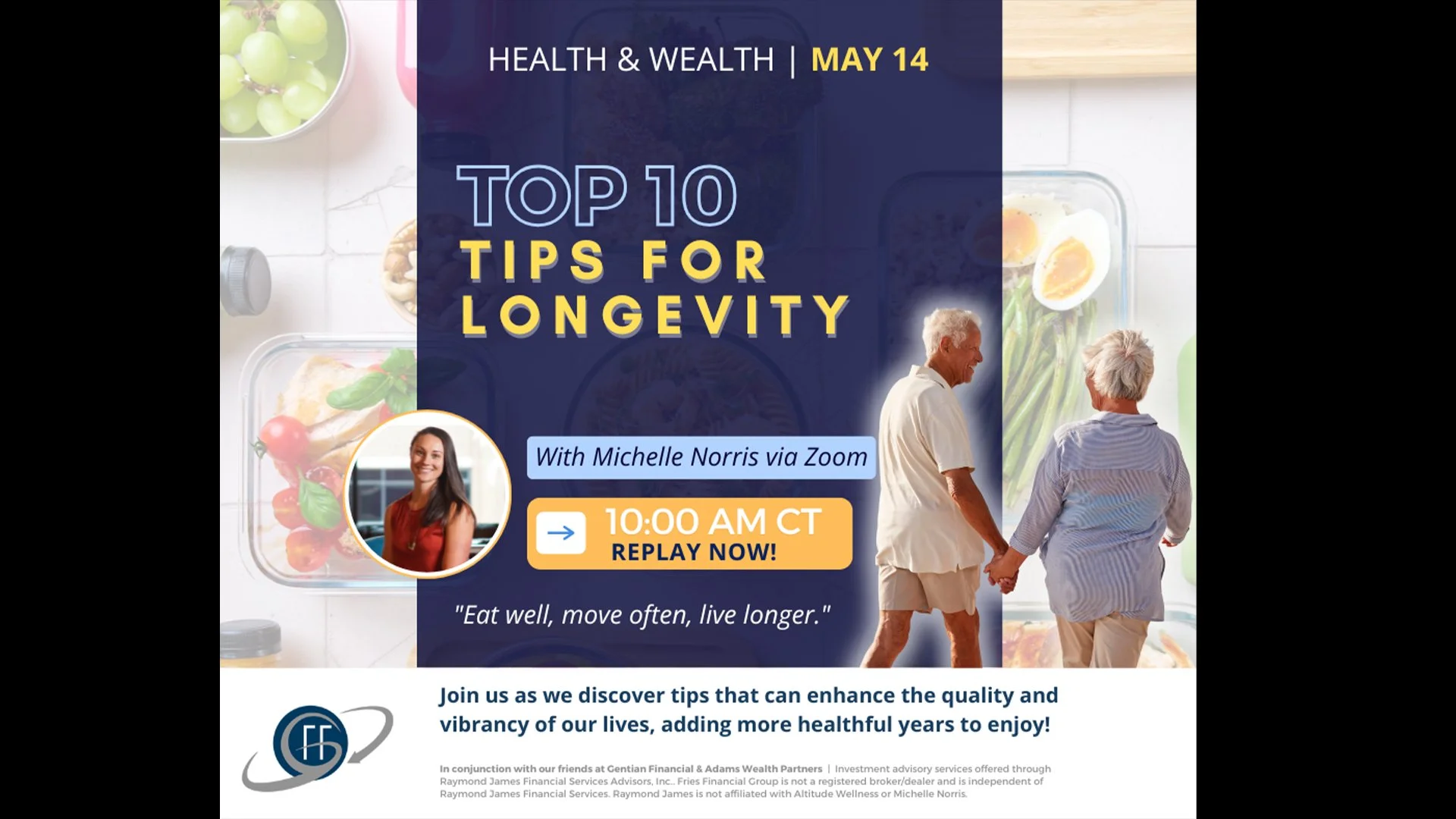 Health & Wealth Series – Top 10 Tips for Longevity Video Replays May 28 Written By Nikki Ziegler Learn about small changes that make a big difference, with Michelle Norris. Nikki Ziegler